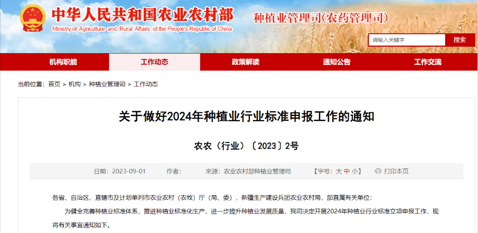 为健全完善种植业标准体系,推进种植业标准化生产,进一步提升种植业发展质量,我司决定开展2024年种植业优米官网app立项申报工作,现将有关事宜通知如下。